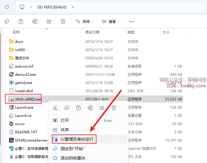 打开解压后的文件夹,右键程序【JAVA-x64位】,点击【以管理员身份运行】。