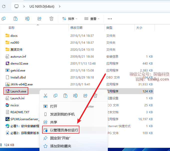 回到解压后的文件夹内,右键程序【Launch】,点击【以管理员身份运行】。