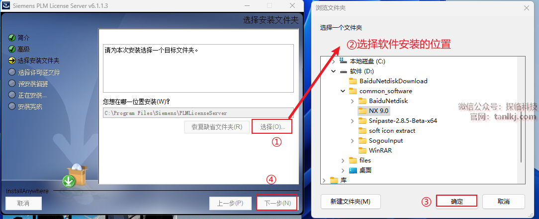 ②选择软件安装的位置,安装路径不能包含任何中文字符(需记住安装位置);