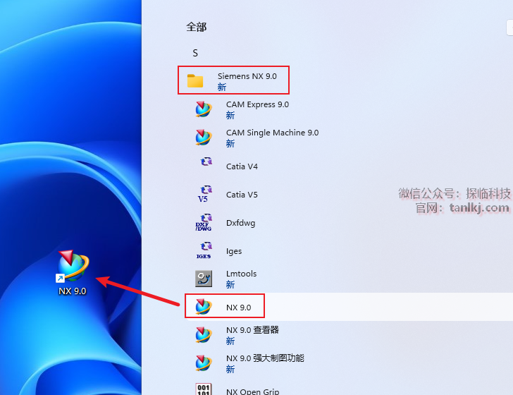 找到软件【NX 9.0】,并将其拖至桌面创建快捷方式。