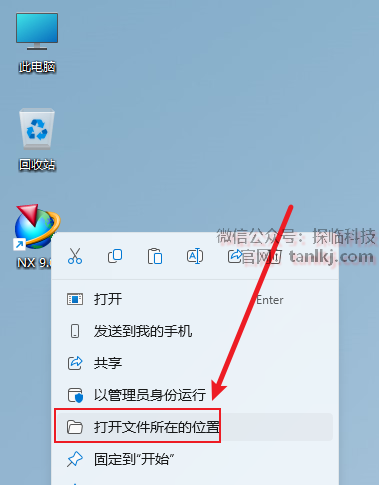 在桌面,右键软件【NX 9.0】,点击【打开文件所在的位置】。