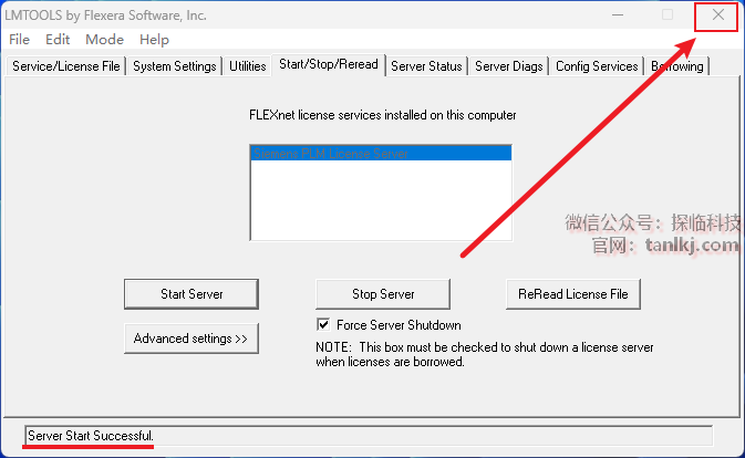 提示:Server Start Successful之后,点击右上角【X】关闭程序。
