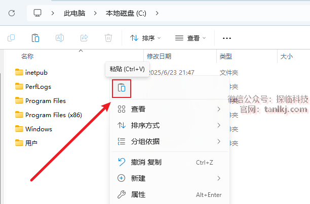 打开电脑C盘,粘贴刚刚复制的文件。