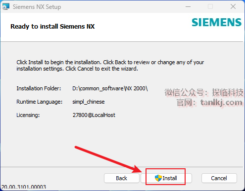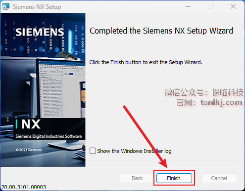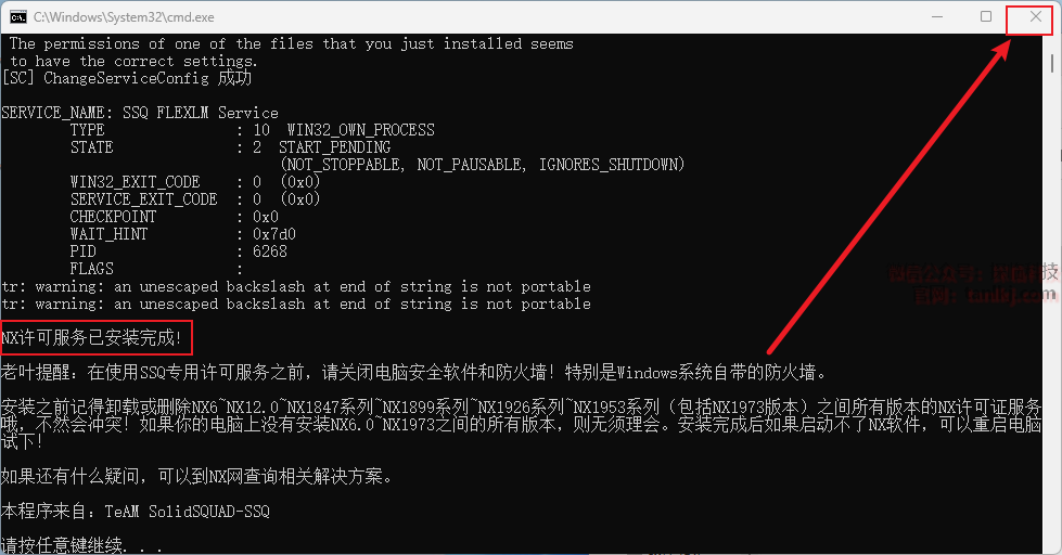 提示:NX许可服务已安装完成后,点击右上角【X】关闭窗口。