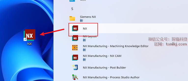 找到软件【NX】,并将其拖至桌面创建快捷方式。