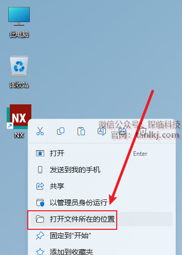 在桌面,右键软件【NX】,点击【打开文件所在的位置】。