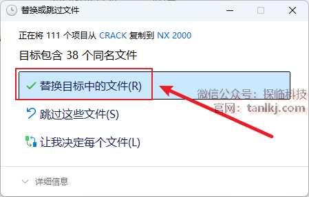 点击【替换目标中的文件】。
