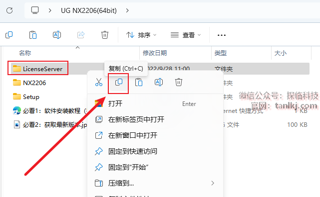 打开解压后的文件夹,复制文件【LicenseServer】。