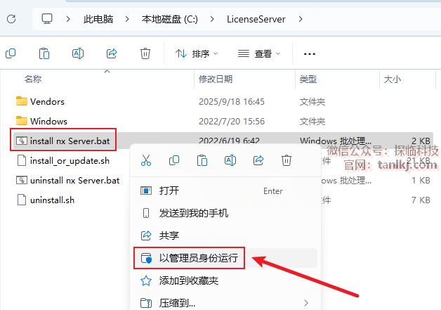 右键程序【install nx Server】,点击【以管理员身份运行】。