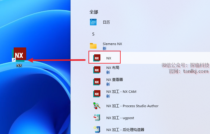 找到软件【NX】,并将其拖至桌面创建快捷方式。