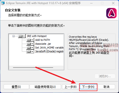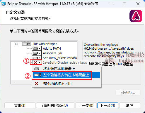 ①点击JavaSoft(Oracle)registry keys前的【X】;
