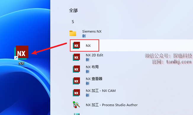找到软件【NX】,并将其拖至桌面创建快捷方式。