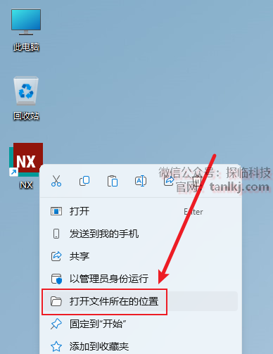 在桌面,右键软件【NX】,点击【打开文件所在的位置】。