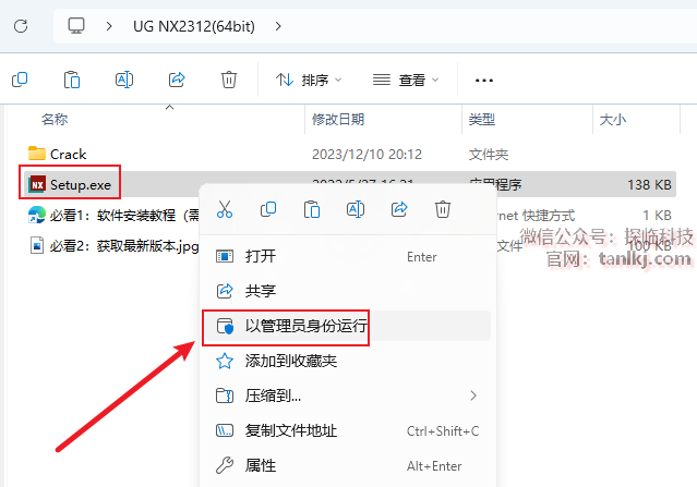 回到解压后的文件夹,右键程序【Setup】,点击【以管理员身份运行】。