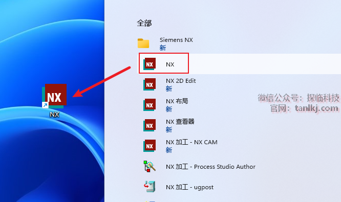 找到软件【NX】,并将其拖至桌面创建快捷方式。