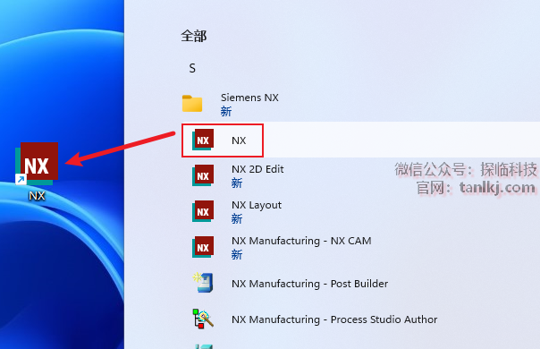 找到软件【NX】,并将其拖至桌面创建快捷方式。