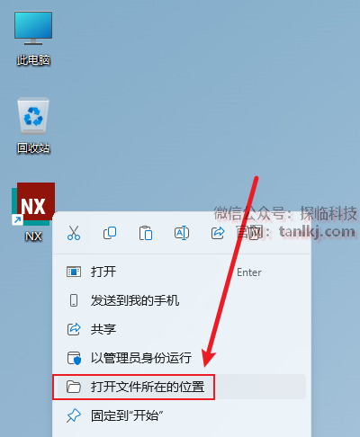 在桌面,右键软件【NX】,点击【打开文件所在的位置】。