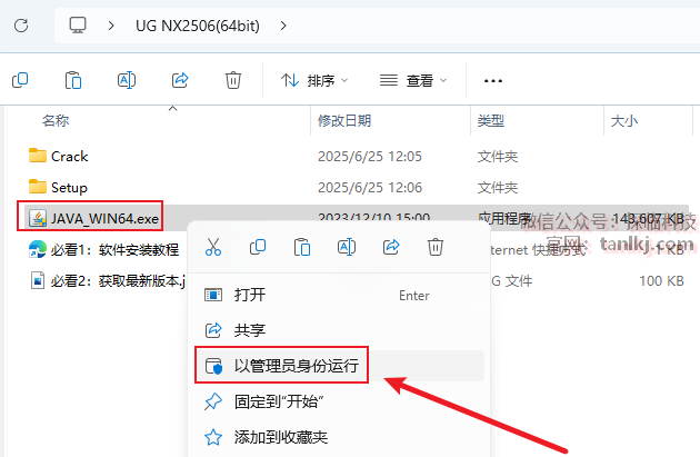打开解压后的文件夹,右键程序【JAVA_WIN64】,点击【以管理员身份运行】。