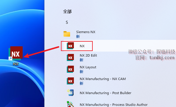 找到软件【NX】,并将其拖至桌面创建快捷方式。