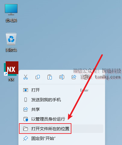 在桌面,右键软件【NX】,点击【打开文件所在的位置】。