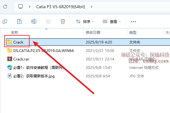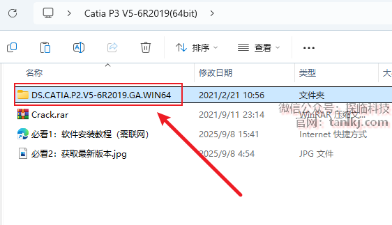 打开解压后的文件夹,双击打开文件夹【DS.CATIA.P2.V5-6R2019…】。