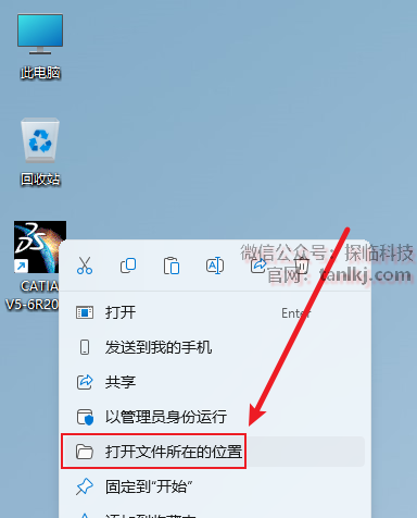 在桌面,右键软件【CATIA V5-6R2019】,点击【打开文件所在的位置】。