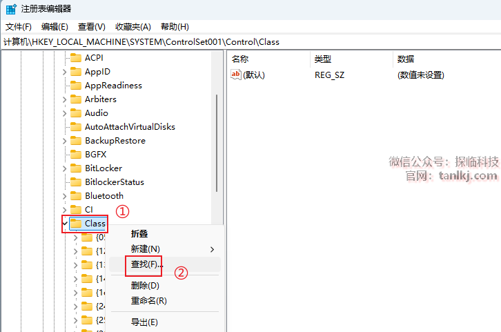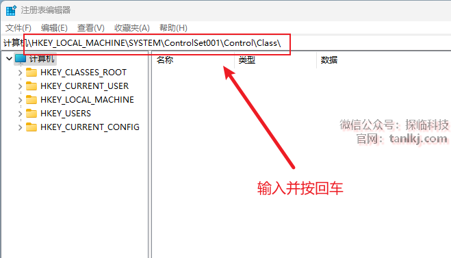 在路径地址栏输入(或依次展开):HKEY_LOCAL_MACHINE\SYSTEM\ControlSet001\Control\Class\