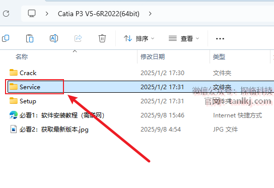 回到之前解压后的文件夹内,双击打开文件夹【Service】。