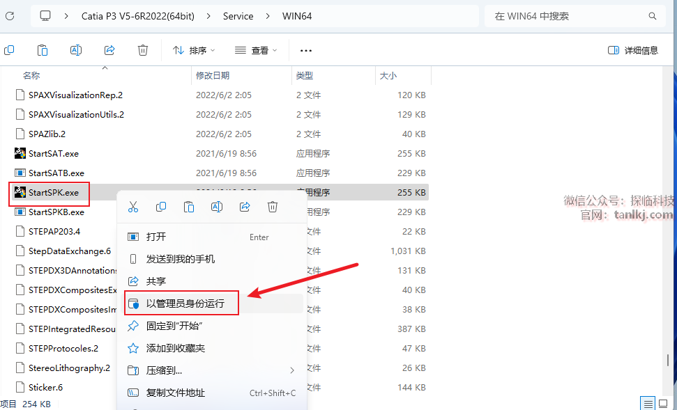 右键程序【StartSPK】,点击【以管理员身份运行】。