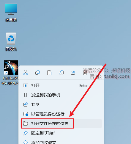 在桌面,右键软件【CATIA V5-6R2022】,点击【打开文件所在的位置】。