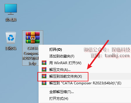 解压下载后的软件包。右键软件包,点击【解压到当前文件夹】(win11系统需先点击【显示更多选项】)。 (未安装解压软件可以点击此处查看:如何安装解压软件?)