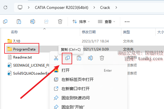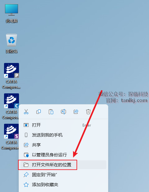在桌面,右键软件【CATIA Composer R2023】,点击【打开文件所在的位置】。