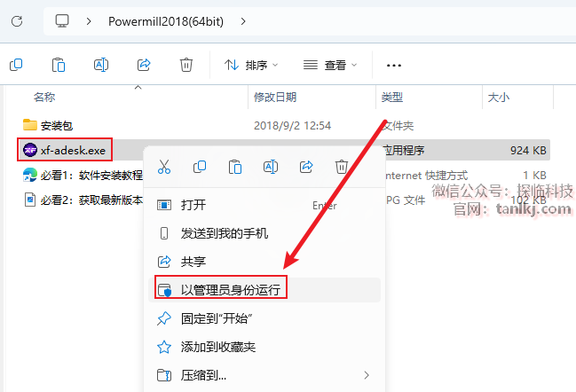 回到之前解压后的文件夹中,右键程序【xf-adesk】,点击【以管理员身份运行】。