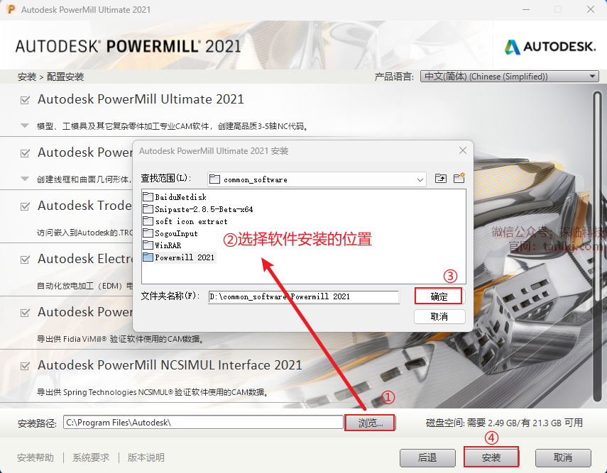 ②选择软件安装的位置,安装路径中不能包含任何中文字符;