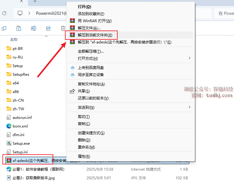 回到之前解压后的文件夹中,解压文件【xf-adesk…】到当前文件夹。