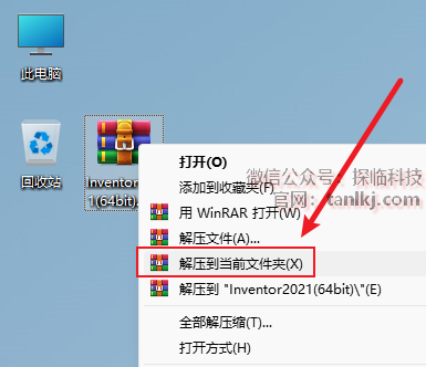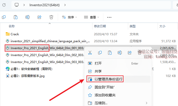 打开解压后的文件夹,右键程序【Inventor_Pro_2021…】,点击【以管理员身份运行】。
