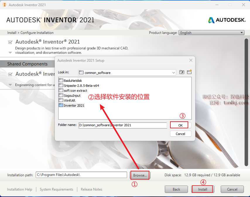 ②选择软件安装的位置,安装路径中不能包含任何中文字符;