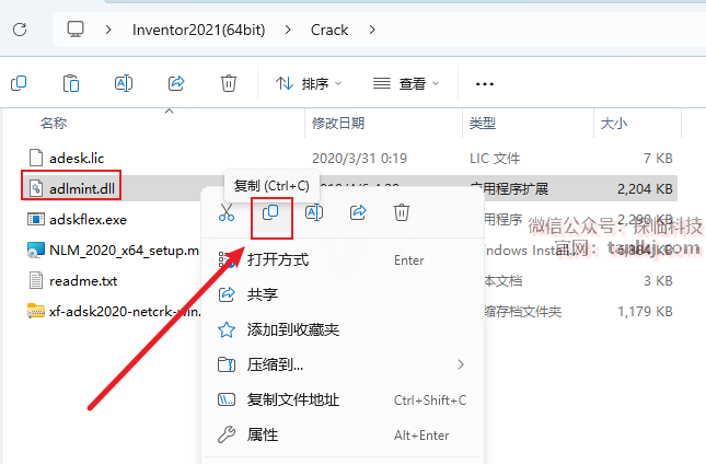 回到【Crack】文件夹中,复制文件【adlmint】。