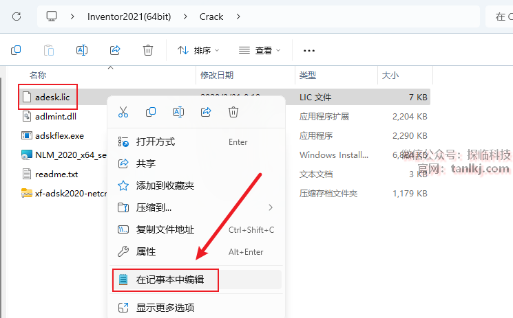 回到【Crack】文件夹中,以记事本方式打开文件【adesk】。