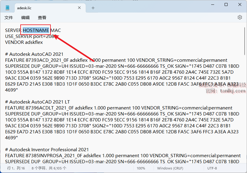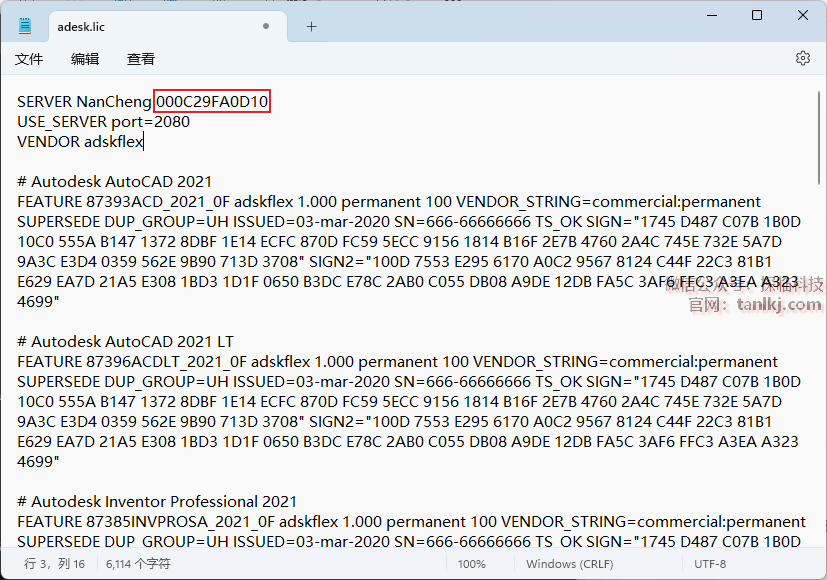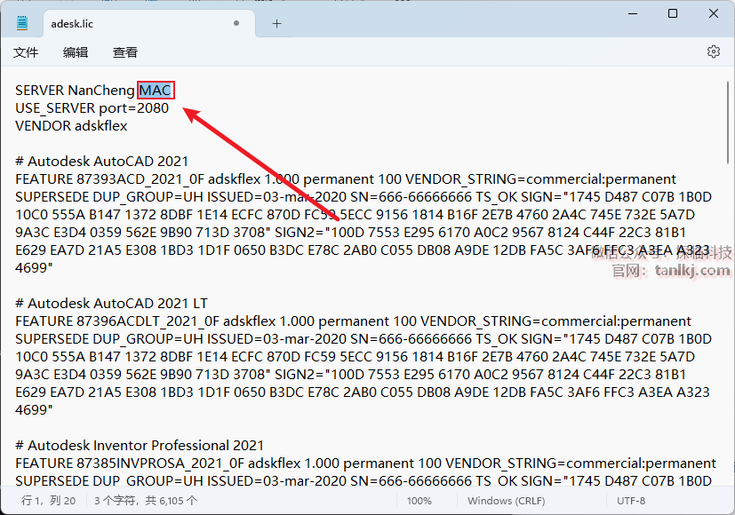 回到文件【adesk】中,将MAC替换成刚刚复制的内容,并去掉横杠“–”。