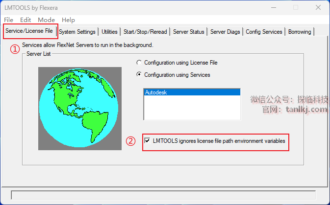 ②勾选【LMTOOLS ignores license file path environment variables】。