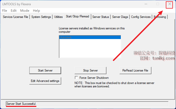 提示:Server Start Successful后,点击右上角【X】关闭窗口。