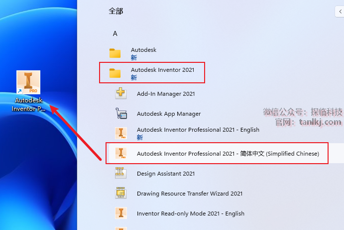 找到软件【Autodesk Inventor Professional 2021 – 简体中文(Simplified Chinese)】,并将其拖至桌面创建快捷方式。