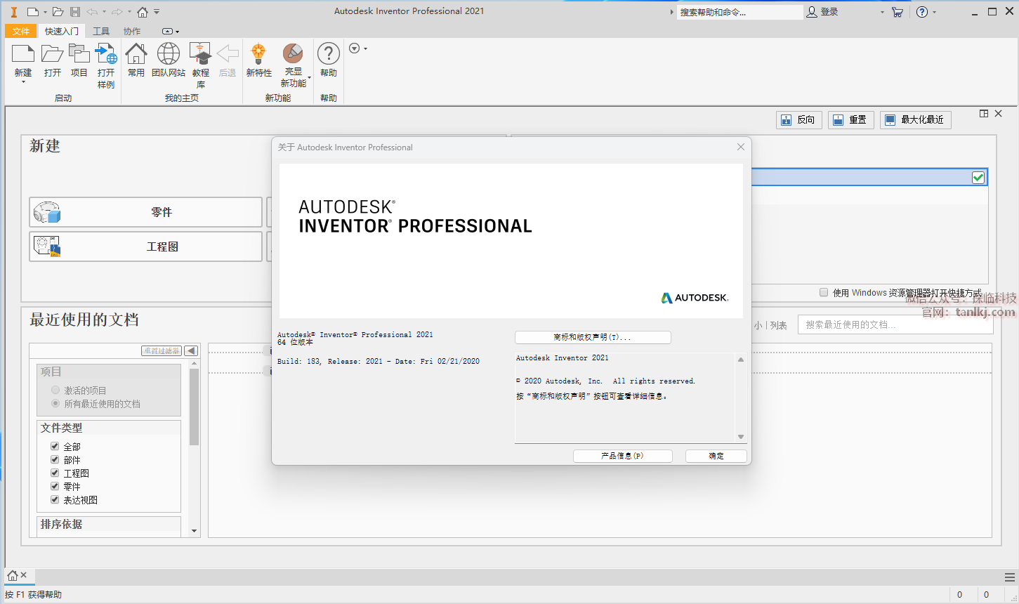 在桌面,双击运行软件【Autodesk Inventor Professional 2021 – 简体中文(Simplified Chinese)】。