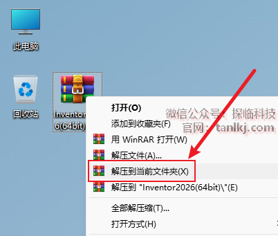 解压下载后的软件包。右键软件包,点击【解压到当前文件夹】(win11系统需先点击【显示更多选项】)。 (未安装解压软件可以点击此处查看:如何安装解压软件?)
