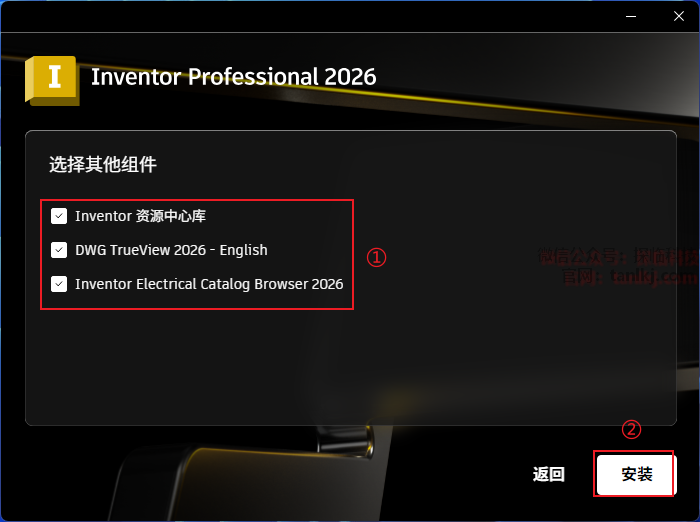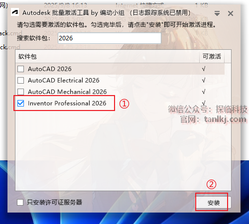 ①勾选【Inventor Professional 2026】;