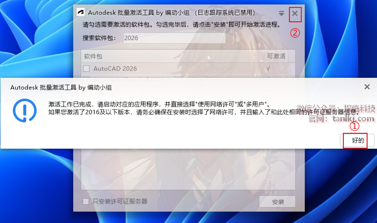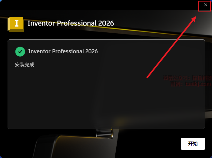 安装完成后,点击右上角【X】关闭窗口。