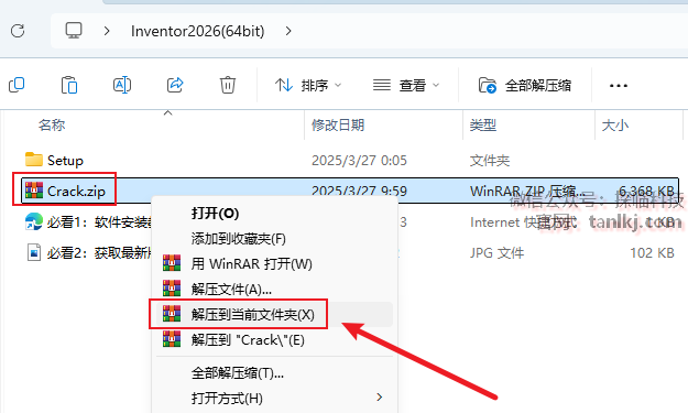 回到之前解压后的文件夹内,解压文件【Crack】到当前文件夹。