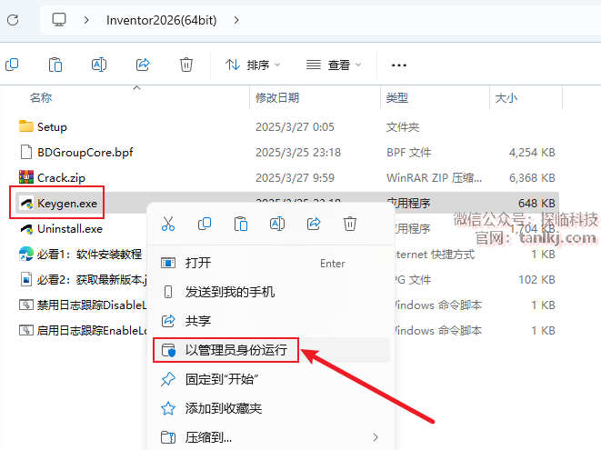 右键刚刚解压出来的文件【keygen】,点击【以管理员身份运行】。