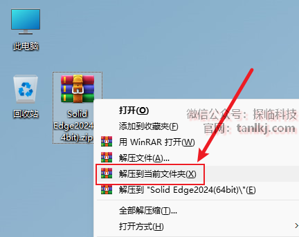 解压下载后的软件包。右键软件包,点击【解压到当前文件夹】(win11系统需先点击【显示更多选项】)。 (未安装解压软件可以点击此处查看:如何安装解压软件?)